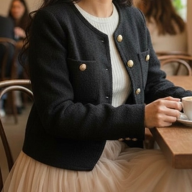 羽織るだけで“きちんと感”と“上品さ”が手に入る、 大人フェミニンの王道アウター ジャケット。 着心地は軽くデイリー使いしやすいのが魅力。 フロントのゴールドボタンがコーデのアクセントになり、 シンプルなトップスと合わせるだけで 品よく華やぐ大人コーデ が完成します。 ■ POINT ・ゴールドボタンで上品さUP ・軽い着心地で長時間でも楽ちん ・肩周りがすっきり見える美シルエット ・ワンピにもパンツにも合わせやすい万能さ ■ おすすめコーデ ・白ニット×デニムで上品カジュアル ・ブラックワンピに合わせて大人キレイめに ・スカートと合わせてフェミニン寄りにも◎ ・会社・学校行事・お食事の“きちんとシーン”にも対応 ■ こんな方におすすめ ✔ 上品に見えるアウターが欲しい ✔ ゴールドボタンのアクセントが好き ✔ 着るだけで高見えする羽織りがほしい ✔ 子ども行事やちょっとした外出に使える1枚を探している ■ 素材感 ふわっと軽くて柔らかい生地。 肩も腕も動かしやすく、ストレスフリー。 サイズはM L Mサイズ 着丈約52㎝ 肩幅約40㎝ 袖丈約55㎝ バスト約88㎝ Lサイズ 着丈約52㎝ 肩幅約40㎝ 袖丈約55㎝ バスト約100㎝ ※平置きでの計測になります。 #ジャケット#金ボタン #ブラック