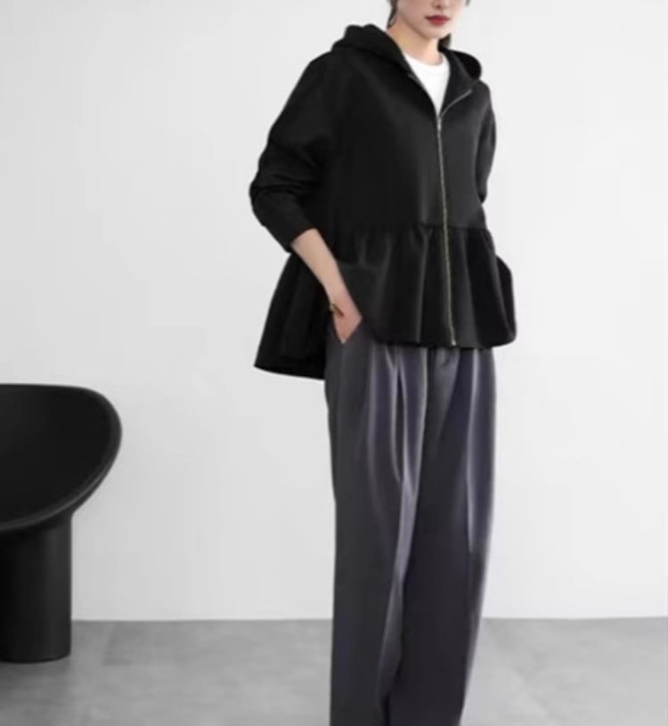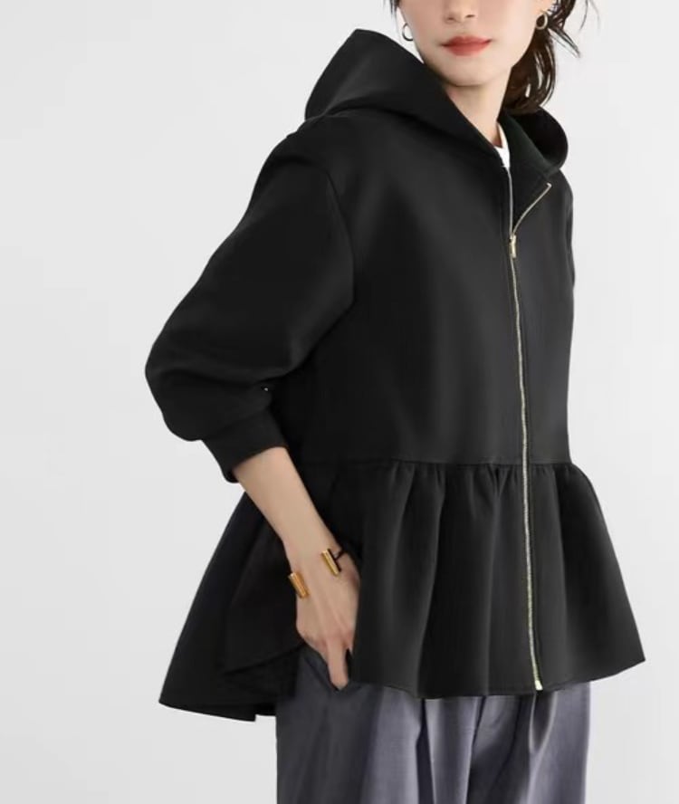 秋冬新作 裾フリルが可愛いアウターコート ジャケット ブルゾン パーカー レディース ショット丈 帽子付き フレア
