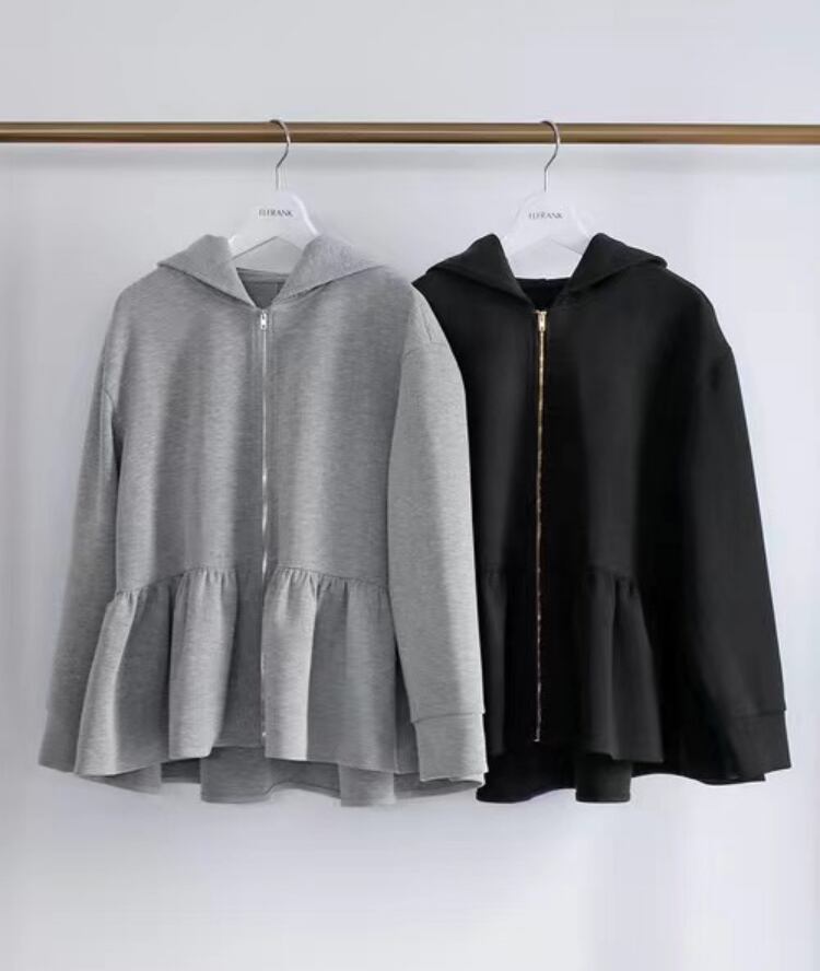 秋冬新作 裾フリルが可愛いアウター コート ジャケット ブルゾン パーカー レディース ショット丈 帽子付き 大人可愛い