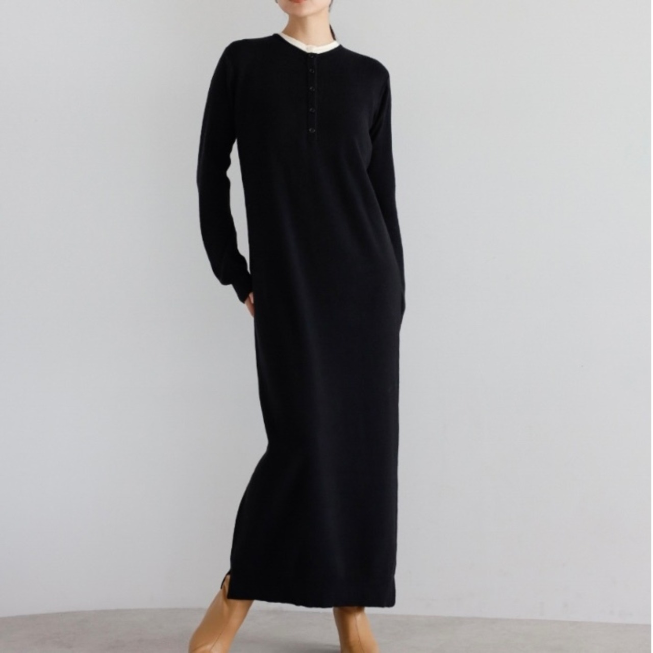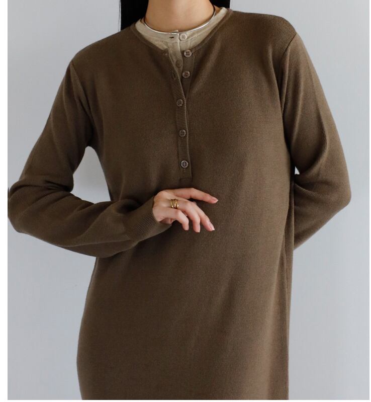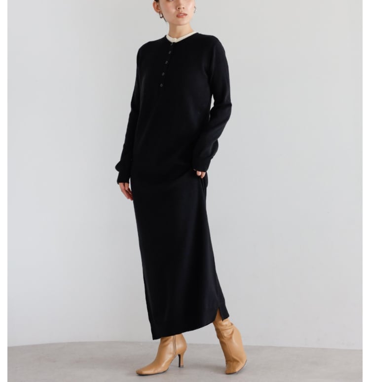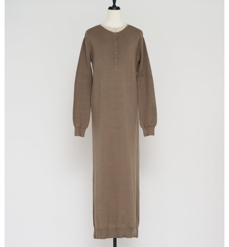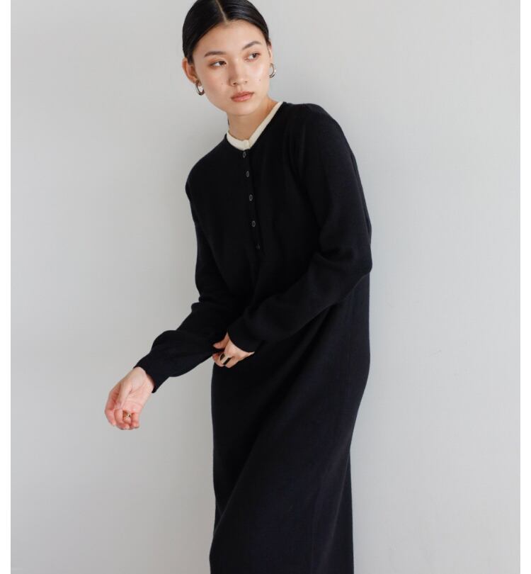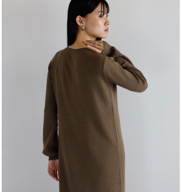 《美シルエットが叶う》もちもちニットヘンリーレイヤードワンピース