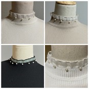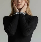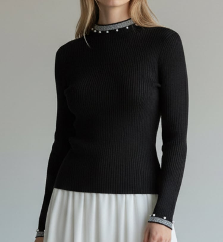【2025AW新作入荷】オケージョン、インナーに使いまわせる!首元&袖口パール使い細リブニットプルオーバー