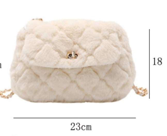 思わず触れたくなる、ふわふわのフェイクファー素材で仕立てたショルダーバッグ。