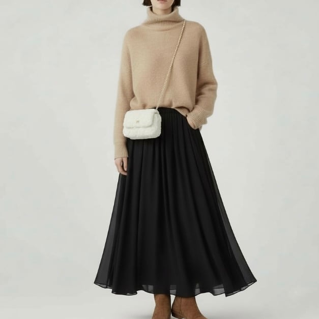 ふんわりニットやワンピースとの相性も抜群で、コーデのポイントになるアイテム。