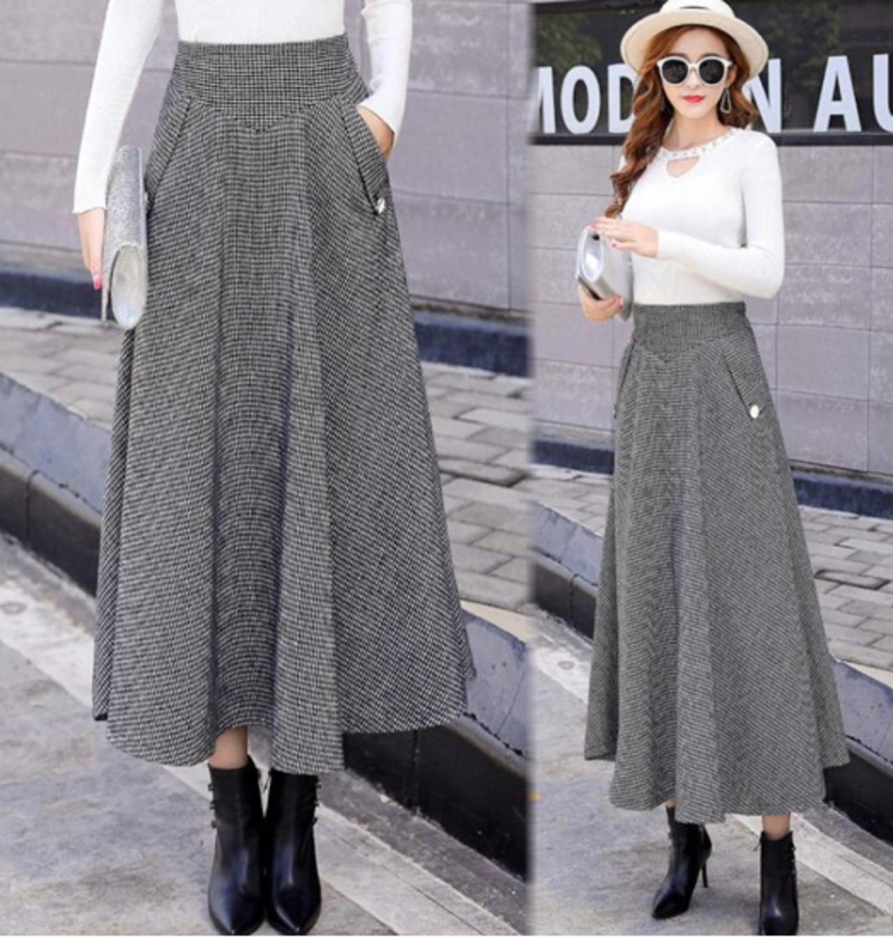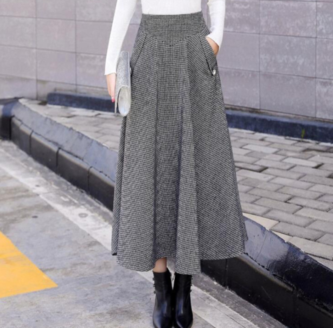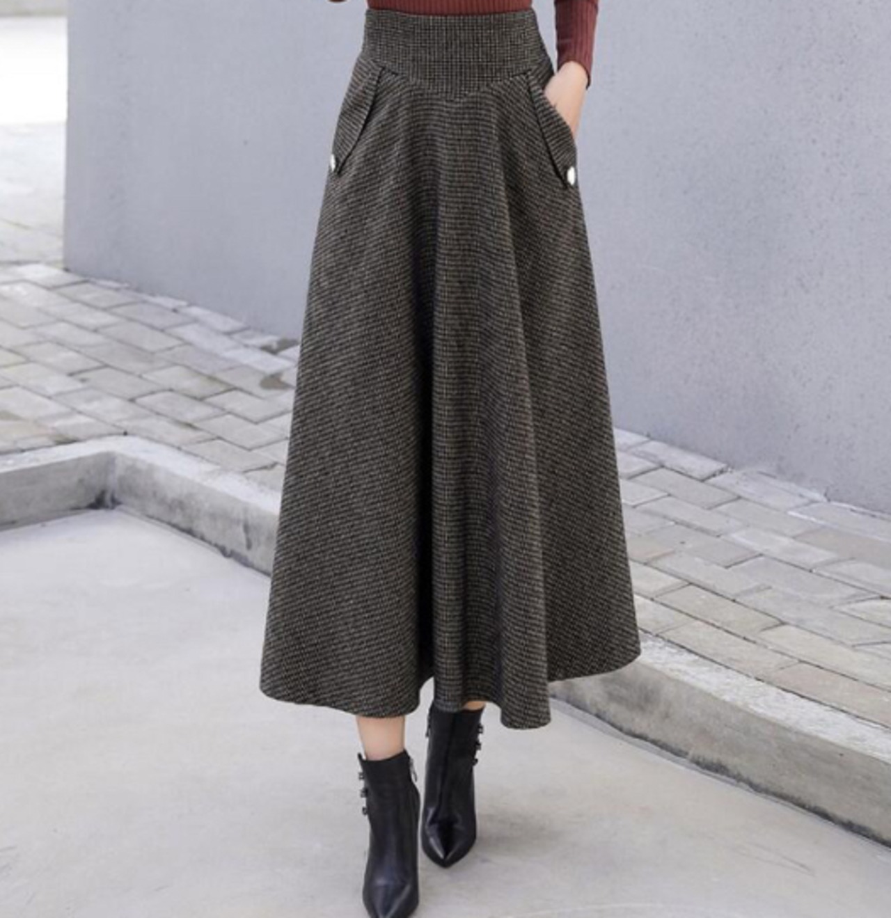大人クラシックな千鳥格子フレアスカート