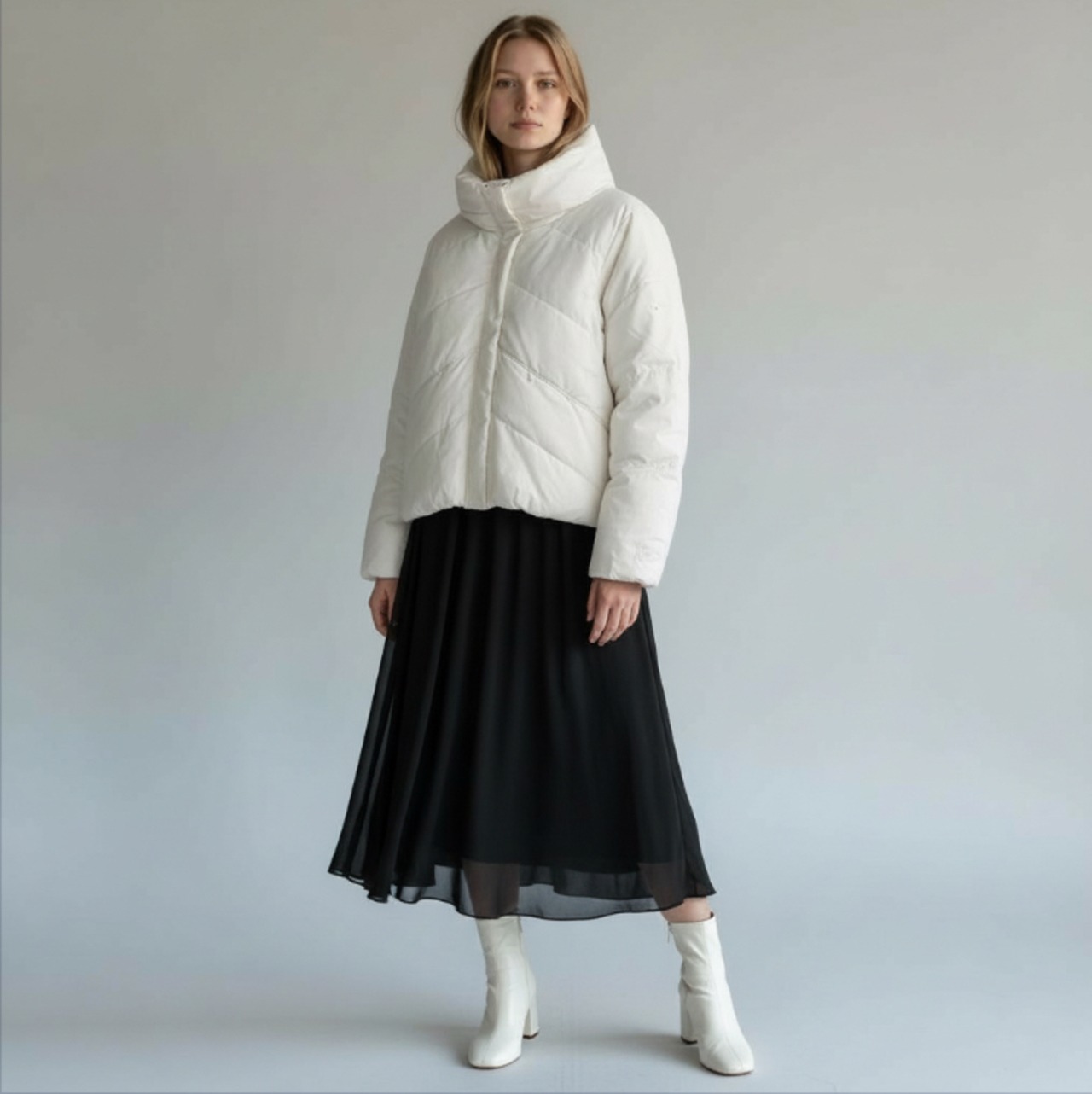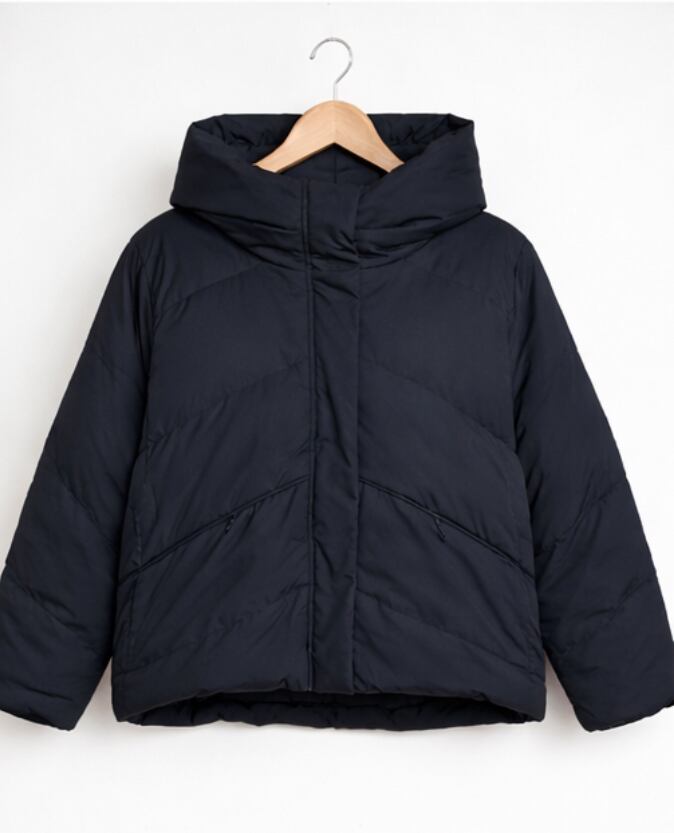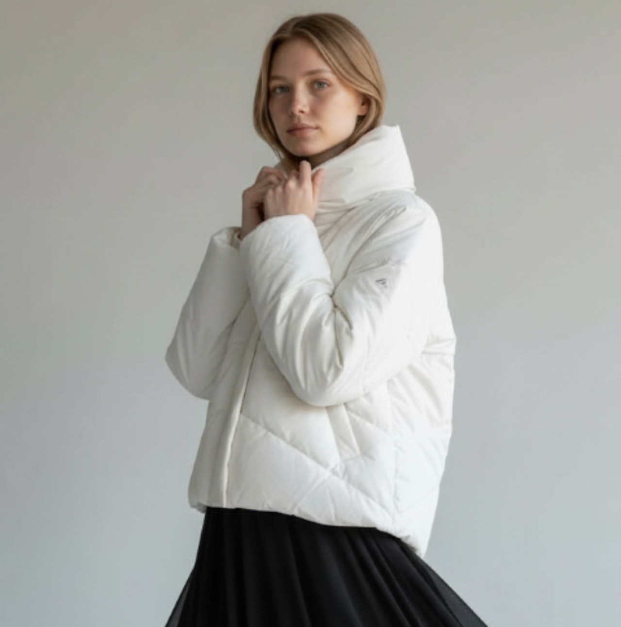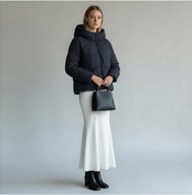 ふんわりとしたボリューム感と、立体的なボリューム襟が印象的なピュアダウンジャケット。