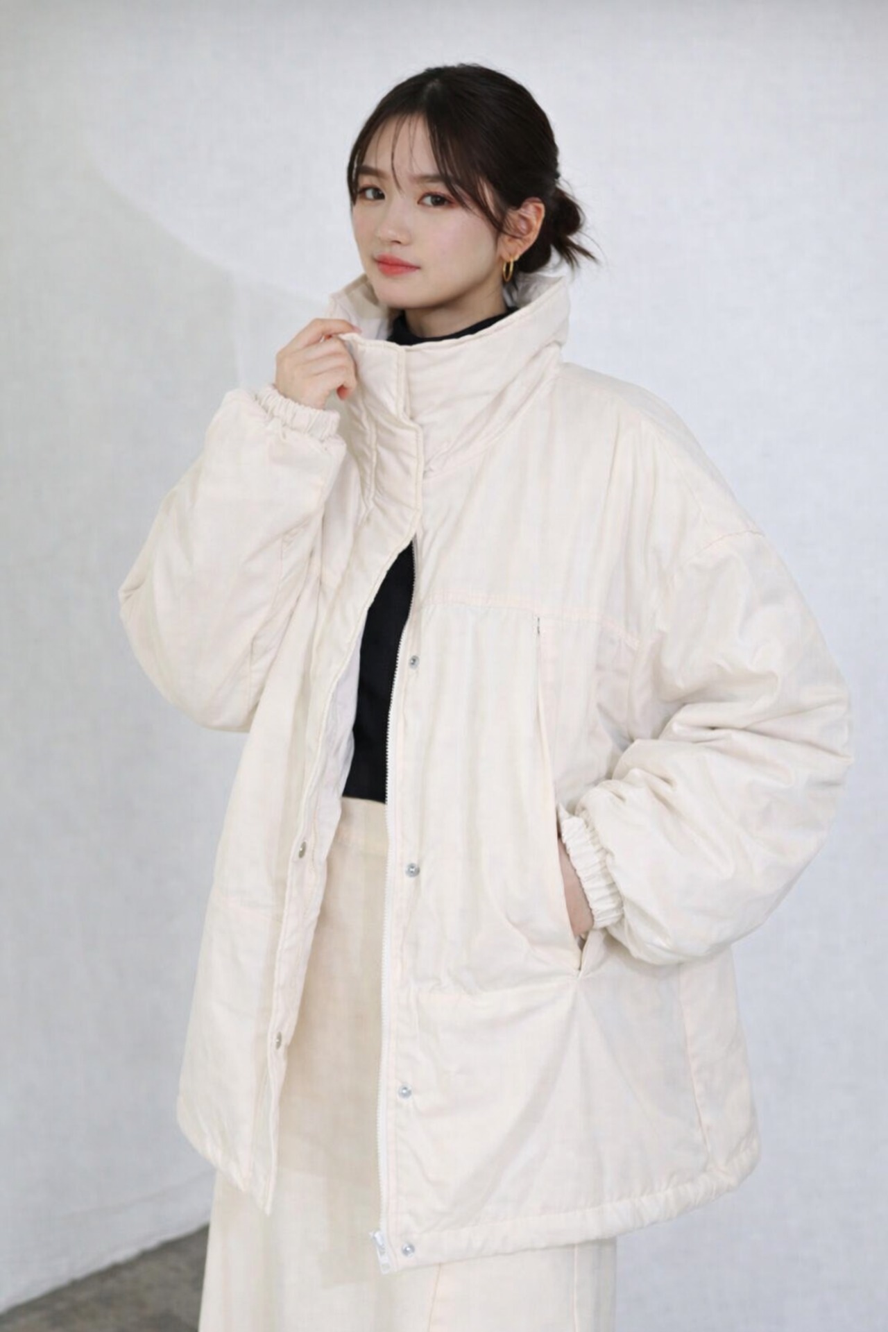 スタンドカラー 2way 中綿 ダウン ジャケット アイボリー