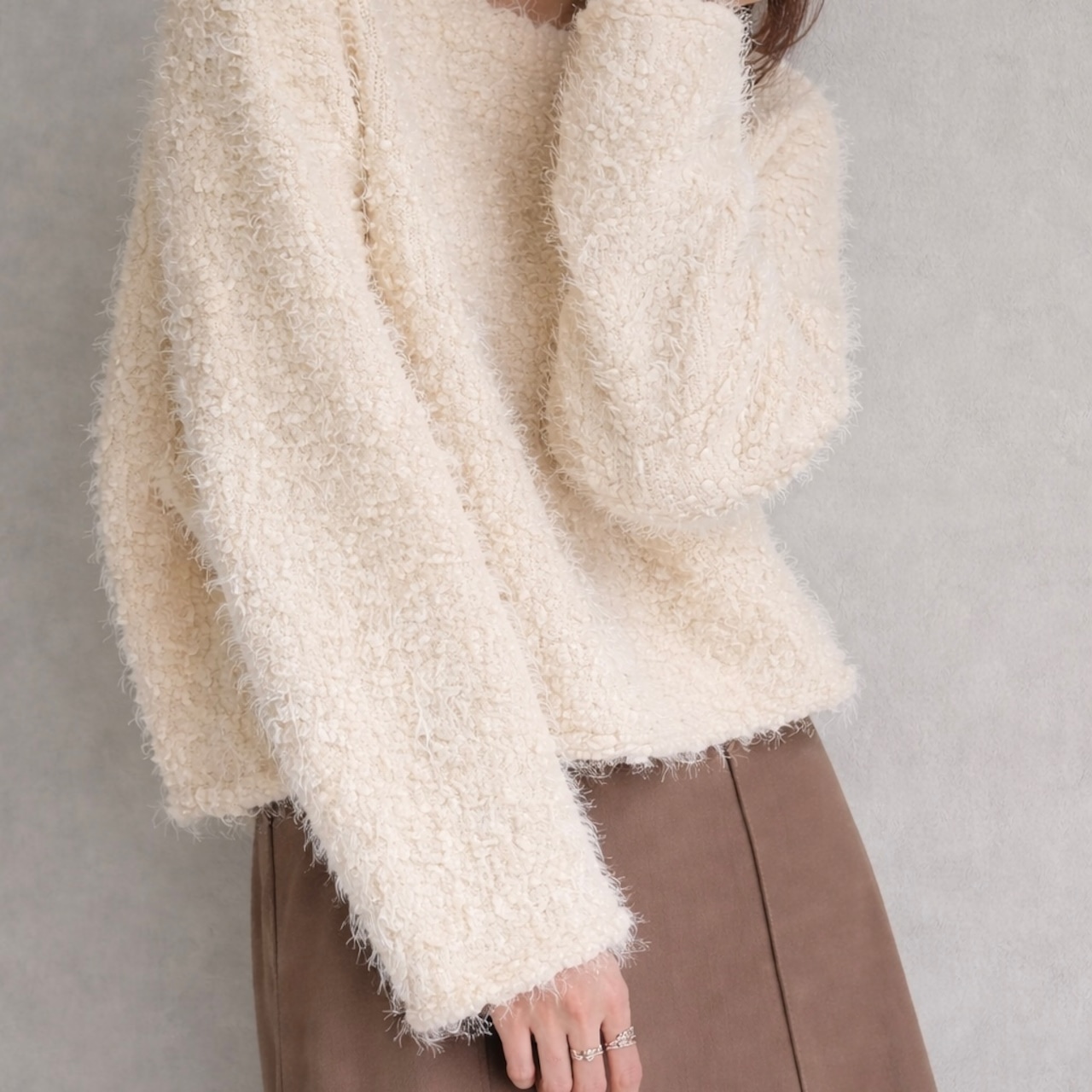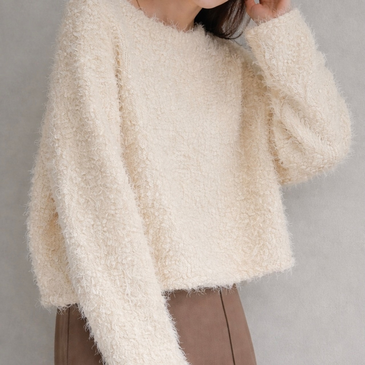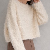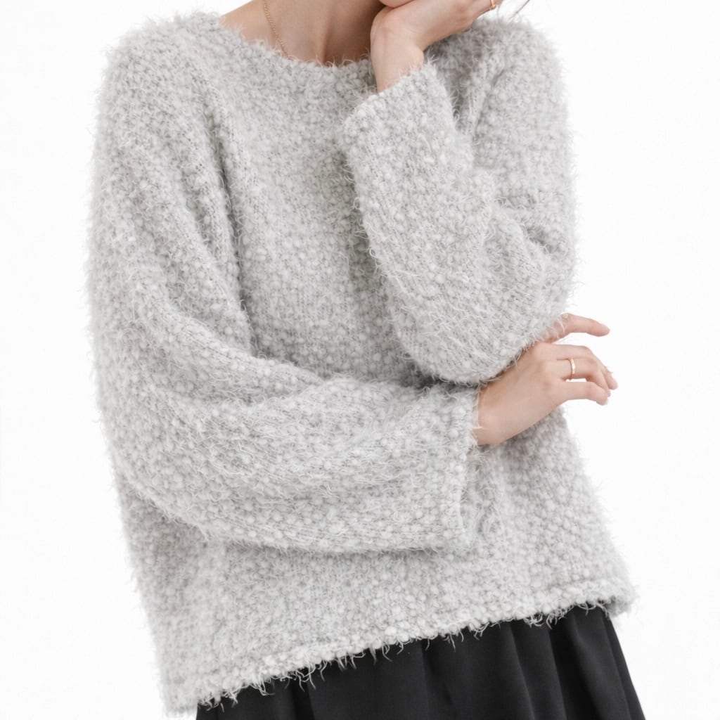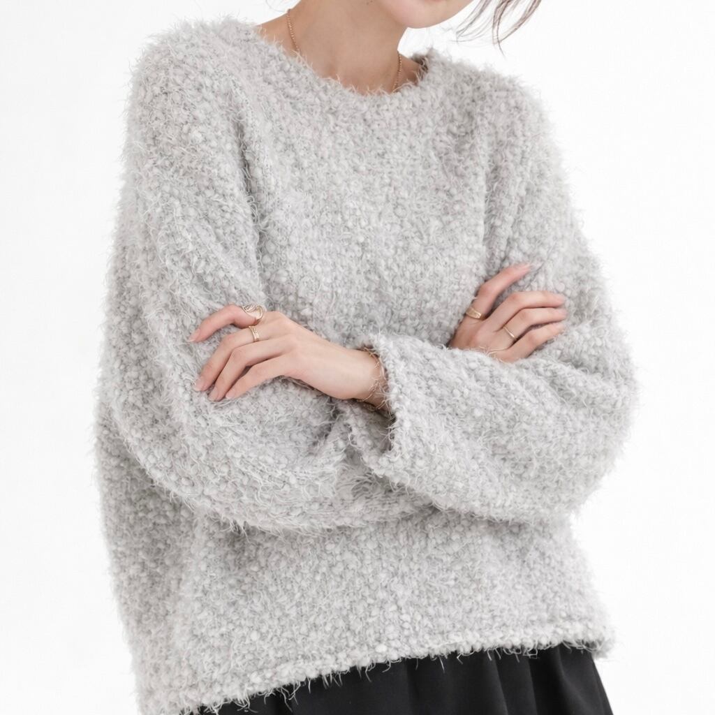 ふわふわとした表情豊かなブークレー素材が魅力のニットプルオーバー。