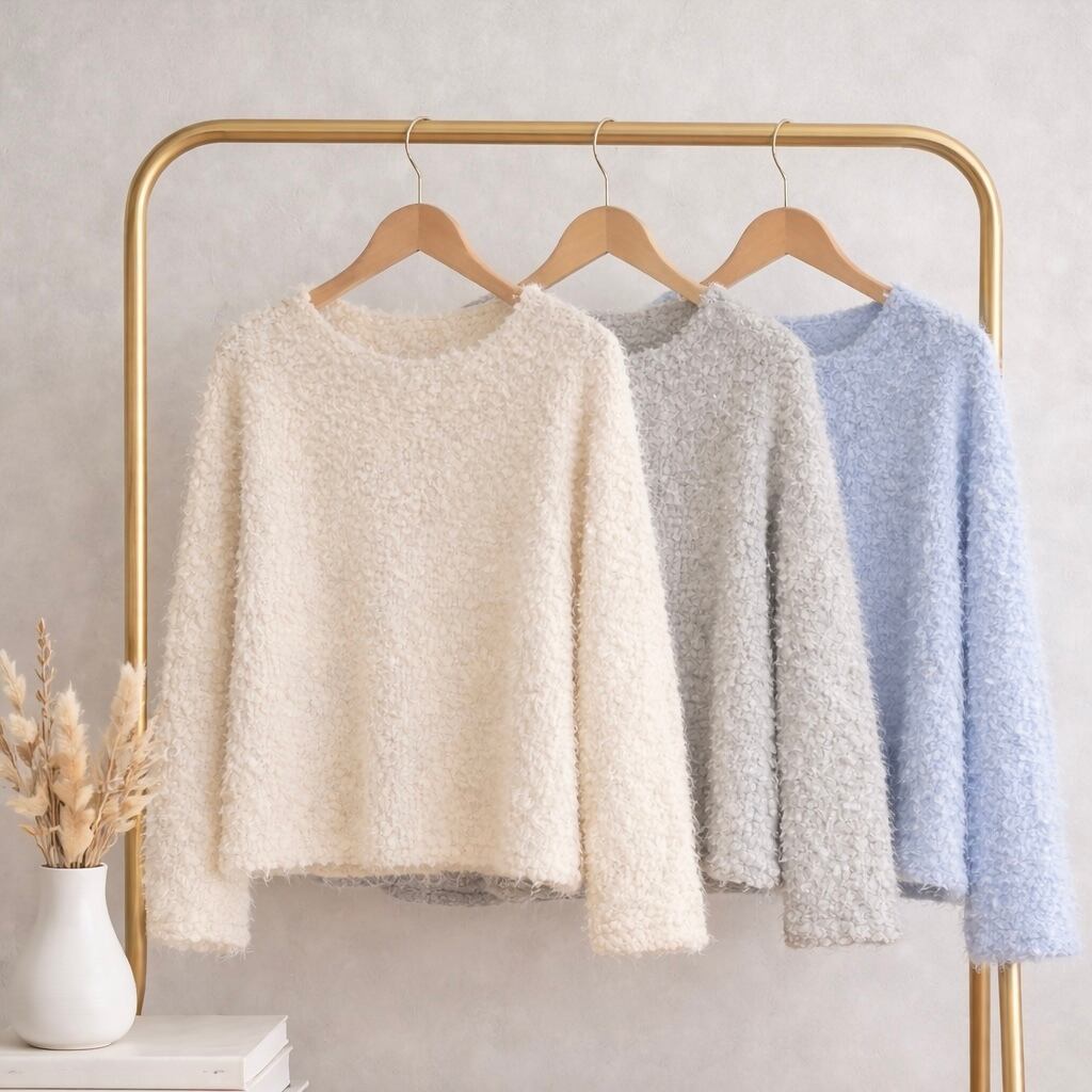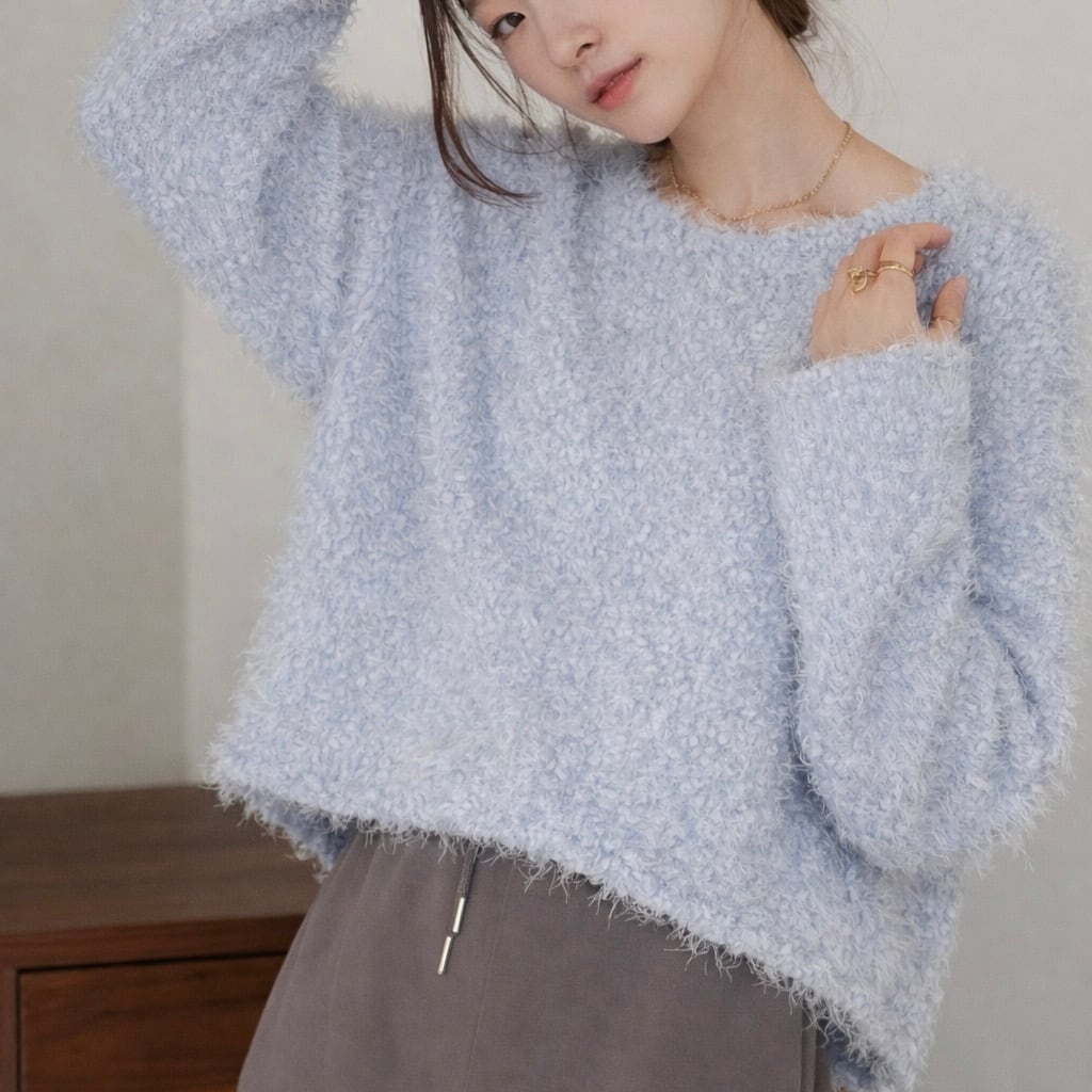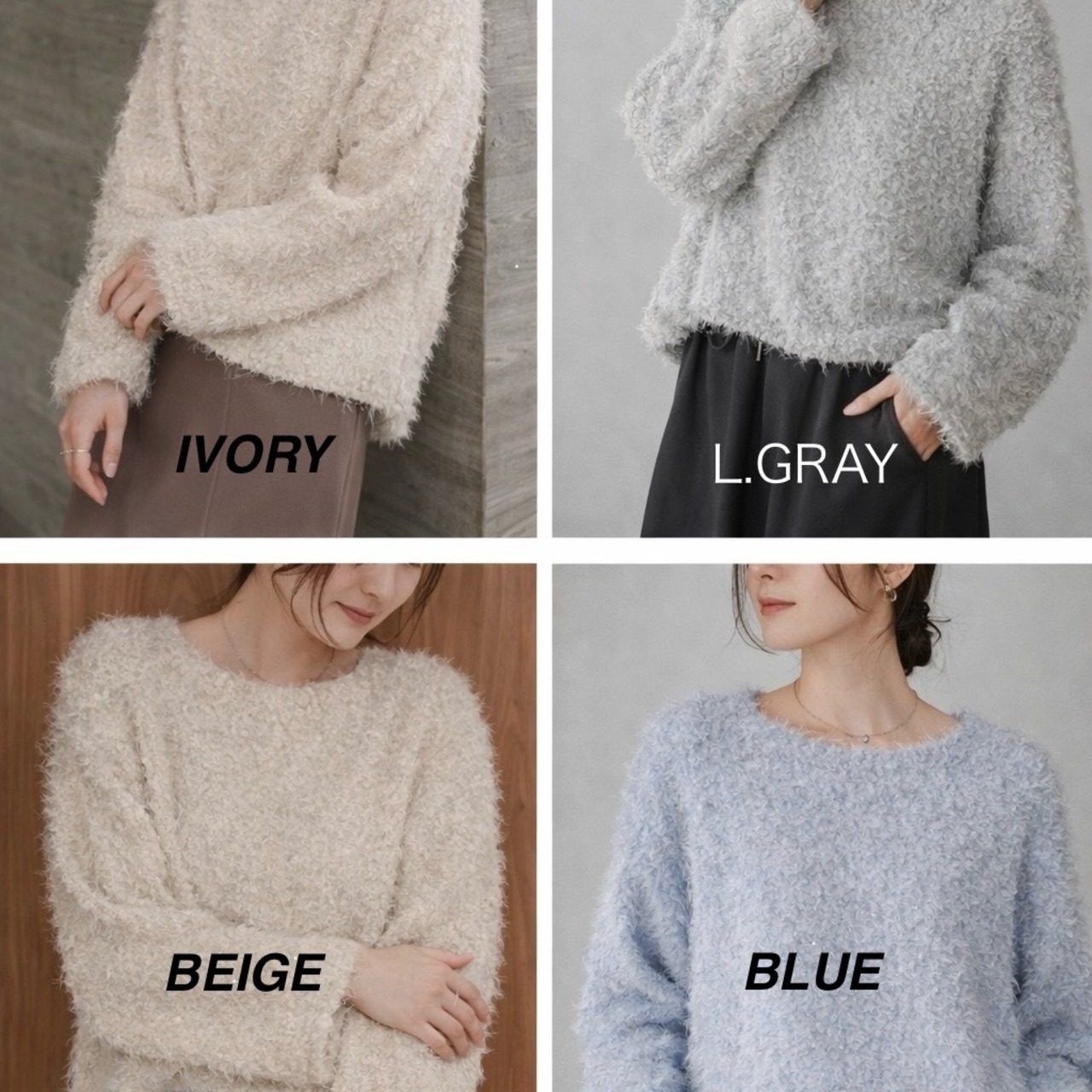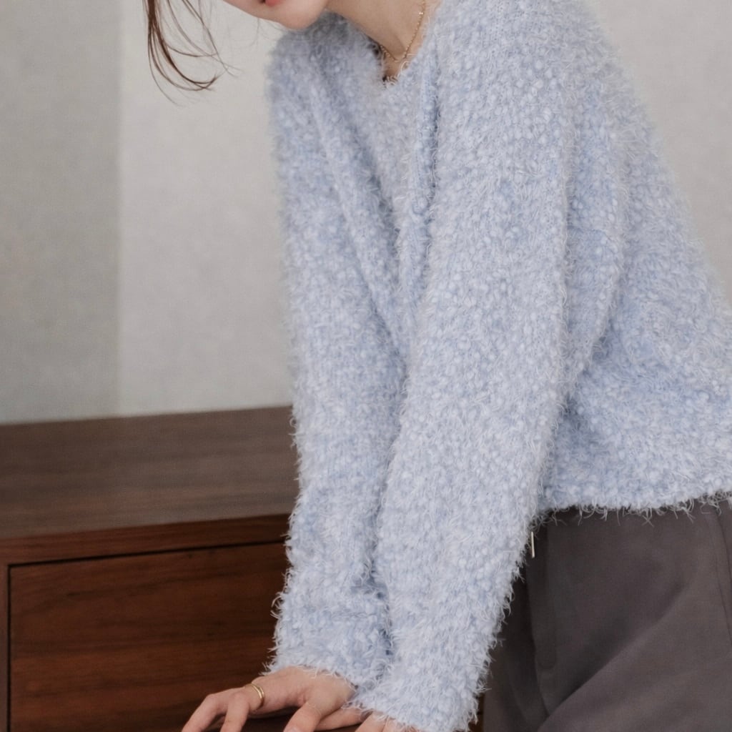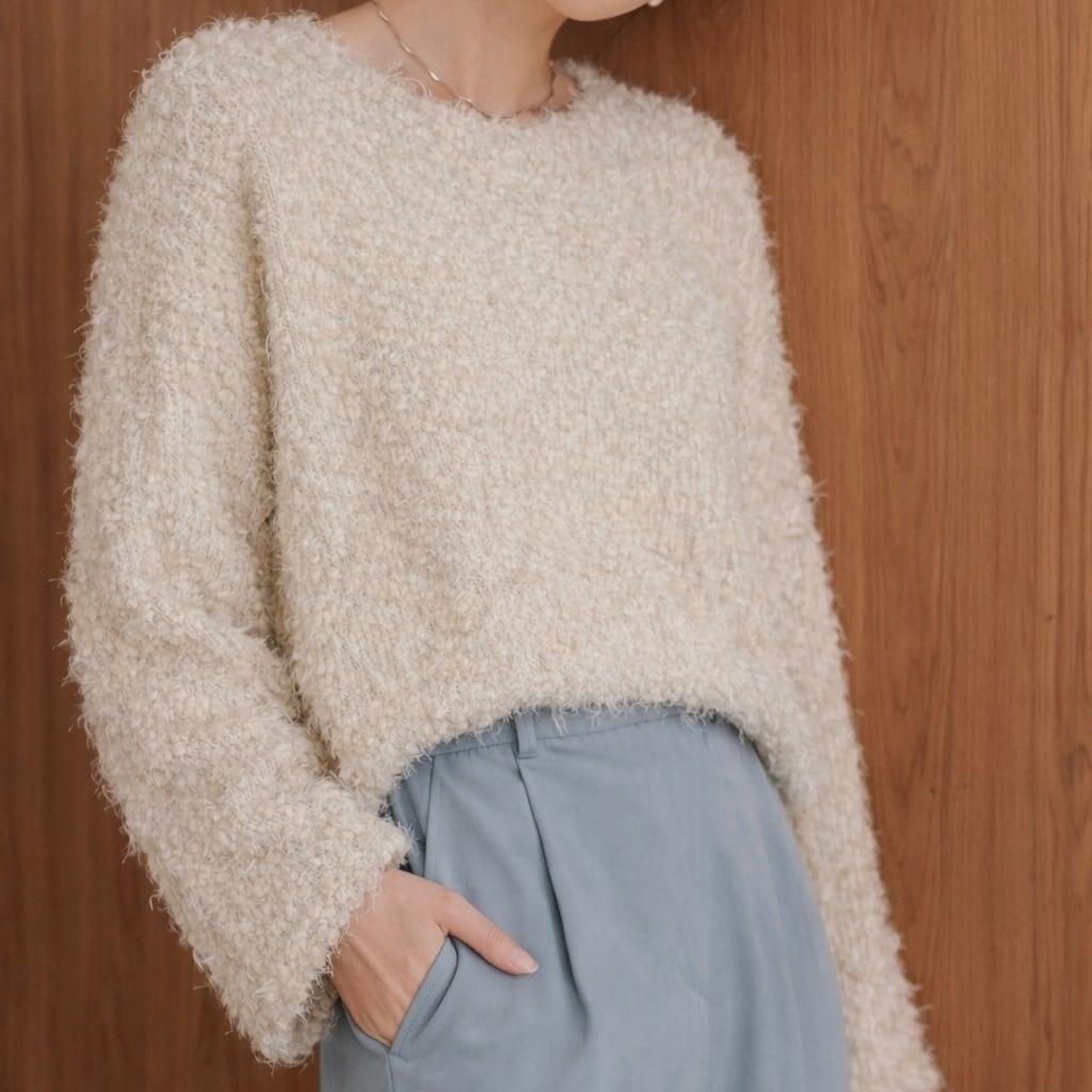 ふわふわとした表情豊かなブークレー素材が魅力のニットプルオーバー。