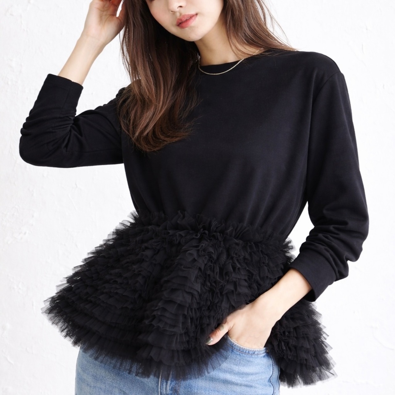 チュールペプラムトップス。