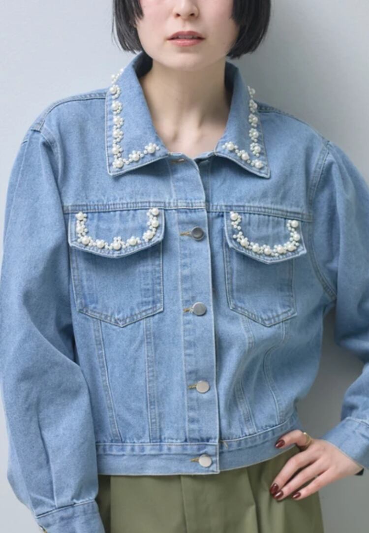 パールがきらめく 大人デニムジャケット
