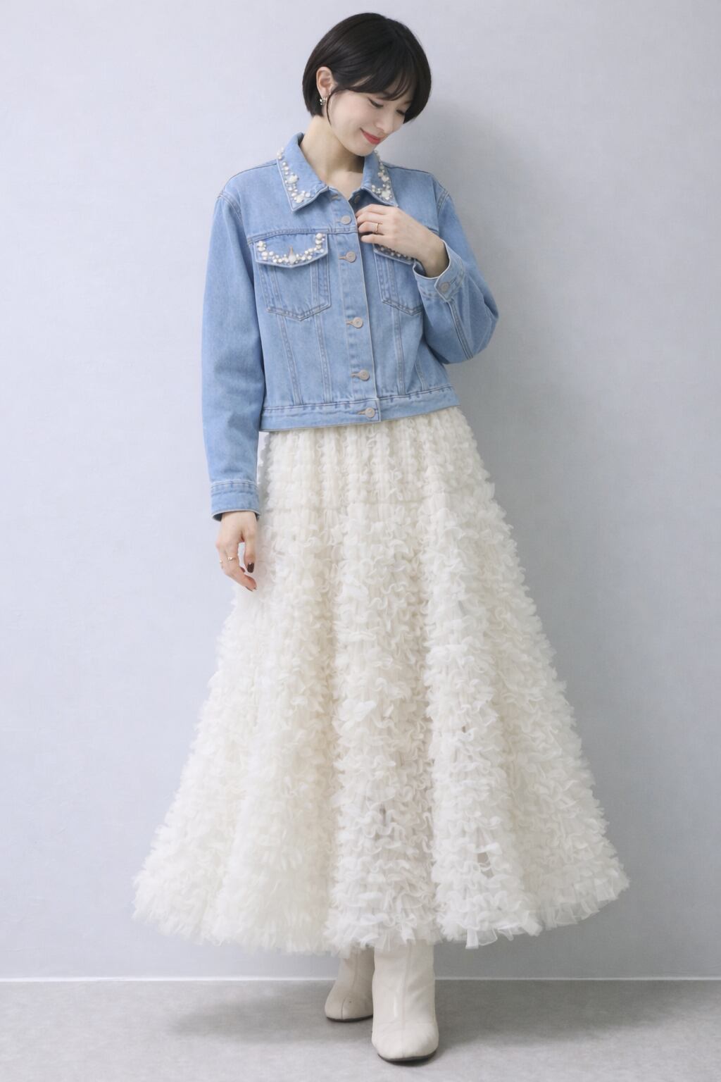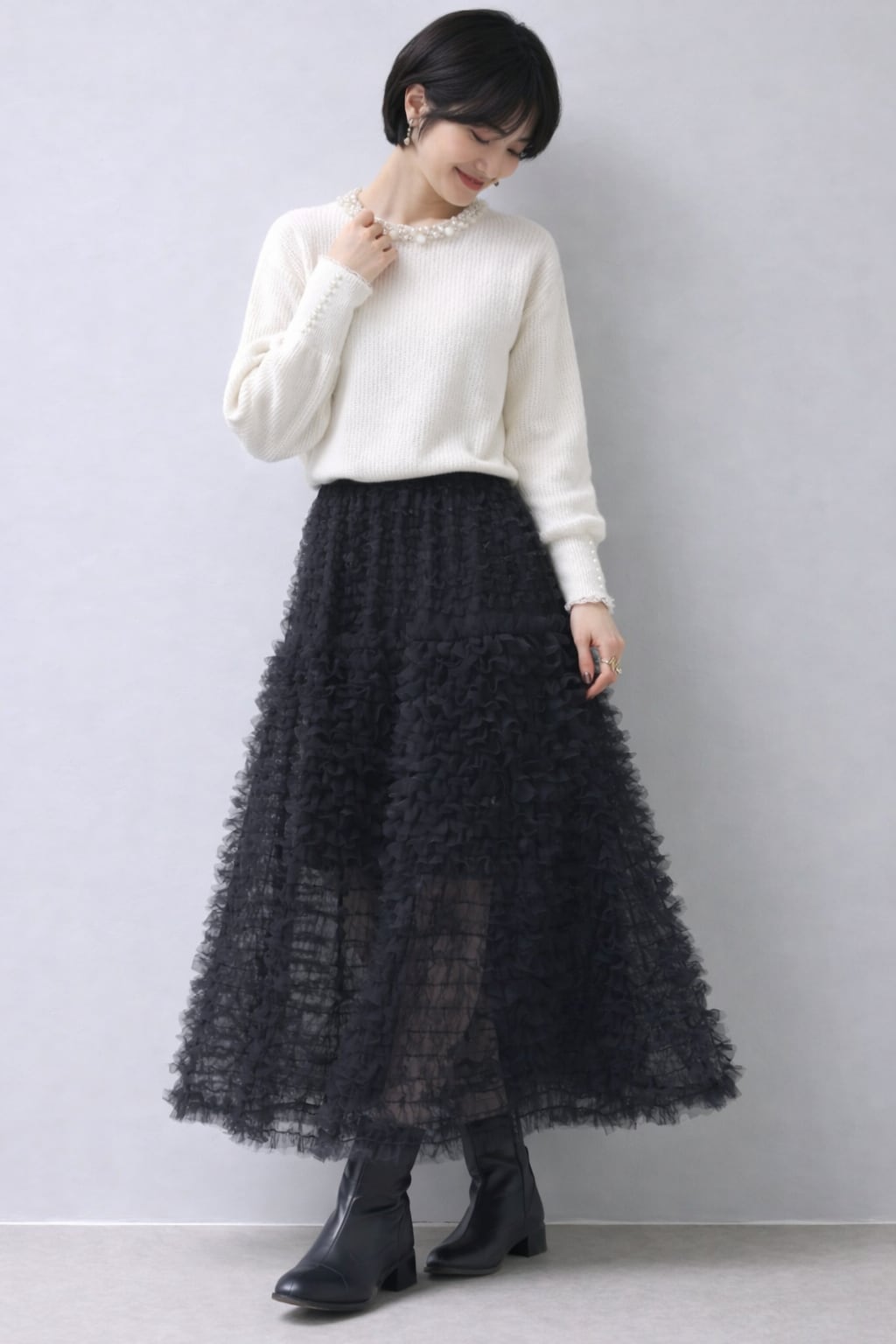 ふんわりと重なり合うチュールが、女性らしさを引き立てる