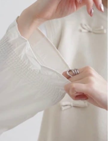 インナーは袖口にギャザーを施し、動くたびに女性らしさが引き立ちます。