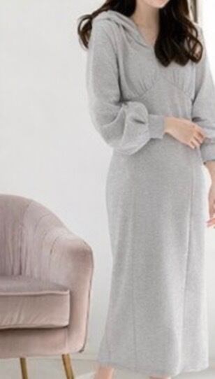 シンプルながらも女性らしいシルエットが魅力のフーディーワンピース。